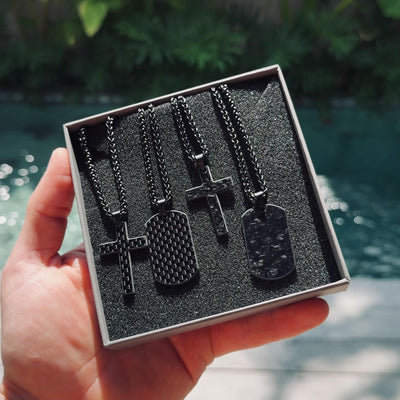 Schon immer einer unserer Bestseller. Die hochwertige Kette aus Edelstahl kombiniert mit einem Anhänger aus echtem Carbon hat das Zeug dazu dein Outfit nochmal so richtig aufzuwerten. Die etwas andere Kreuzkette. Also worauf wartest du noch?